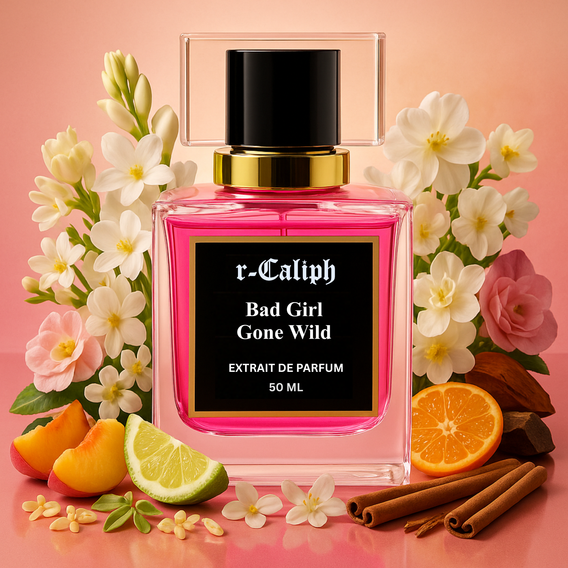 A bold and radiant fragrance where juicy peach and orange blossom meet creamy jasmine and Indian tuberose. Wrapped in warm amber and sandalwood, it captures the spirit of confidence and irresistible femininity.